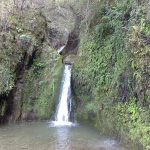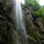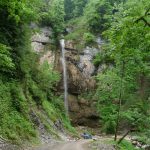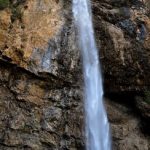 آب بعد از حدود ۷ الی ۱۰ متر به یک برآمدگی برخورد کرده و بصورت بسیار زیبا درهوا پخش میشود. شما در آن واحد علاوه بر مشاهد ریزش آب بصورت آبشار؛ریزش بصورت دانه های درشت باران در اطراف را خواهید داشت. مرطوب بودن دیواره آبشار باعث رشد انواع گلسنگ و خزه شده وهمینطور وجود چشمه گوارا روح وروان هر بیننده ای را نوازش میدهد. آب پس از ریزش بصورت نهری ازسطح جاده که بصورت آب نما ساخته شده است عبور میکند.