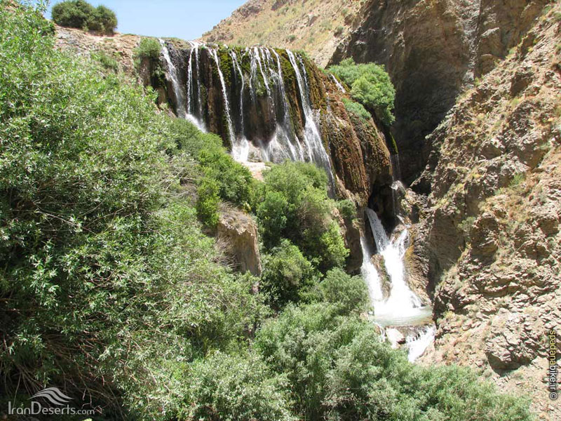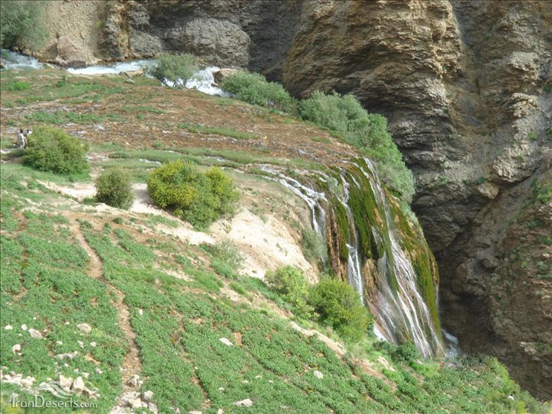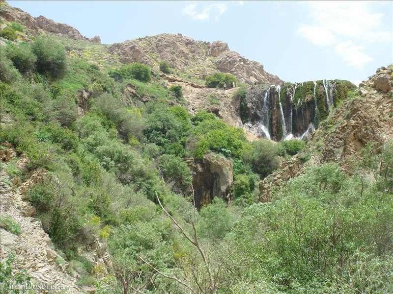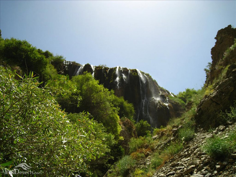 در کنار جاده تابلو آبشار معلوم است و محلی برای پارک وسایل نقلیه در اطراف آن تهیه شده ، بعد از پارک کردن ماشین ها و گرفتن کوله بر پشت بعد از ۳ کیلو متر پیاده روی در شیب نسبتا ملایم رو به پائین بر روی سر چشمهای آبشار سوار می شویم بعد از لذت بردن از این همه چشمه که از تمام قسمت ها جاری است به سمت پائین به طرف دره در یک شیب تند و ریزشی در غرب آبشار به پائین حرکت می کنیم ، بعد از ۲۰۰متر طی مسیر به سمت پائین چشممان به زیبا ترین صحنه هائی که معمولا در خواب و خیال قابل تصور است می افتد و بعد از سیر و سیاحت و رفتن به سمت دهانه آبشار از مسیر سمت شرق دره در جاده پا کوب حرکت می کنیم تا به دو پرورش ماهی می رسیم سپس به سمت تاسیسات پرورش ماهی رفته و از جاده خاکی پروش ماهیها به سمت محل پارک ماشین ها بر می گردیم ، مسیر شیب تندی دارد ولی بی خطر و راحت است .