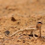 نام علمی : phrynocephalus maculatus نام انگلیسی : black tailed toed agama نام فارسی : آگامای سروزغی دم سیاه