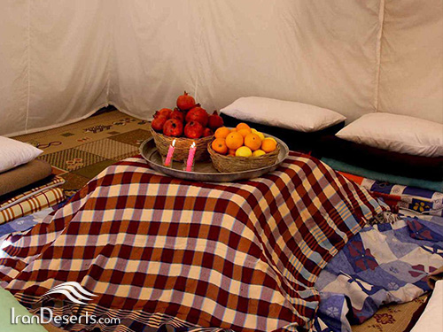 – کلیه چادرها و کومه ها مجهز به سرویس خواب سنتی (لحاف ، تشک ، بالش) ، کُرسی سنتی و پریز برق و روشنایی می باشند