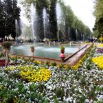 بررسی وضع اولیه باغ نشان میدهد که حرکت پلکانی آب در محور میانی تا بیرون از باغ نیز ادامه داشته است. این فضا در حال حاضر با رواق هایی بازسازی و سنگ فرش شده است. دو استخر اصلی باغ در قسمت بالا و در قسمت ورودی دارای فوارههایی بودهاند که آب را به ارتفاع قابل ملاحظهای پرش میدادند. این راه حل کمتر در باغ های ایرانی دیده شده است و یقیناً متاثر از شناخت باغ ها و چشمههای اروپایی است.