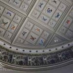 عمارت مستوفی الممالک اولین خانه فرنگی ساز در ایران است و به همین دلیل تزئینات آن نیز فرنگی است و از کاشیکاری، ارسی و شیشه های رنگی در آن خبری نیست و به جای آن انواع گچبری فرنگی و همین طور درهای چوبی نقاشی شده را می توان دید.داخل عمارت کاملا دست نخورده باقی مانده و شاید بتوان آن را تنها خانه تاریخی تهران نامید که هیچ دخل و تصرفی در آن صورت نگرفته است.عمارت یک سرسرا با تزئینات زیبا دارد، سمت چپ آن بزرگترین اتاق عمارت که بهتر است اتاق پروانه نامیده شود و در سمت راست آن دو اتاق کوچکتر قرار دارد که تزئینات هرکدام با دیگری تفاوت دارد.
