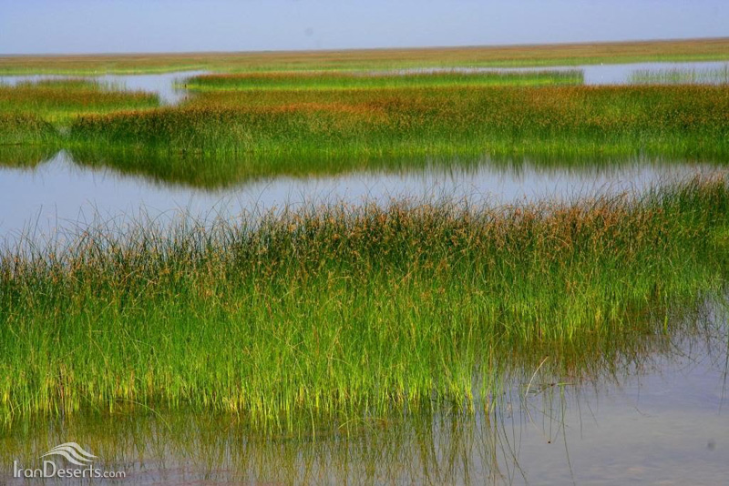 رویش زمین های خشک و شن زارهای حواشی تالاب را گیاهان هالوفیت و گزروفیت تشکیل میدهند.