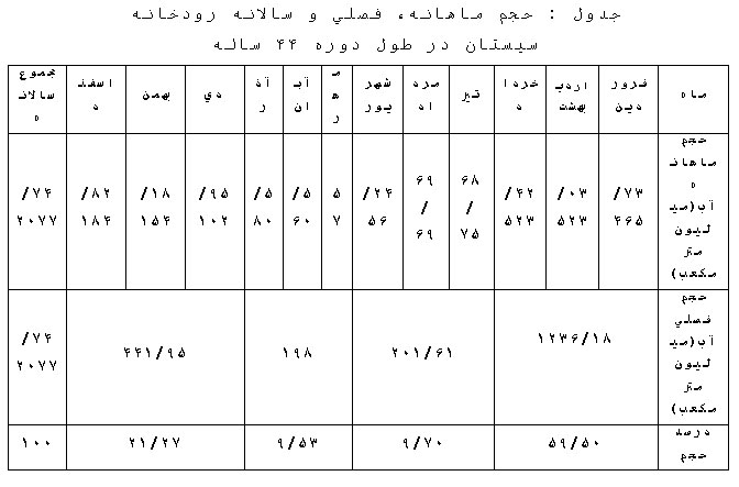 جدول : نتایج بررسی درصد آب جریان یافته فصلی در رودخانه های سیستان و پریان مشترک طی یک دوره 36 ساله را نشان می دهد .
