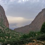 در سنگ اول در یک طرف دو نفر ایستاده شاید یکی « میترا » باشد (مهر) که بر سر او نوری است و دیگری یکی از امشاسپندان و یا یزته اند که با دست به او احترام می کنند در طرف دیگر سنگ شخص تنومند با یک دست گرزی گرفته با دست راست به عبادت مشغول است. در طرف سوم، مردی، آتش فراوانی در ظرفی به دست دارد و دیگری دست به سینه او ایستاده است. چند کیلومتر بالاتر از دهنه تنگ، دو سنگ روبروی یکدیگر دارای نقوشی چند به ترتیب زیر هستند. در سمت راست جاده سنگ بزرگی قرار داشت که دو طرف آن منقوش بود: