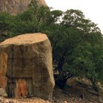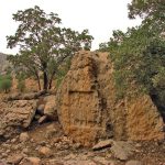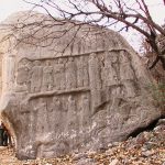 یک صد و پنجاه قدم جلوتر، سنگی است که در دو طرف نقش دارد: