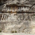 در این تنگه ۶ نقش برجسته کنده شده که تقریبا همگی نزدیک به ورودی آن و در فاصلهای کمتر از ۵۰۰ متر از شهر باستانی بیشابور قرار دارند. اگر از سمت بیشابور به این تنگه وارد شوید ۴ عدد از این نقش برجستهها در شمال و سمت چپ و دو تای دیگر در جنوب و سمت راست قرار دارند. اولین نقش برجسته که بزرگترین و شلوغ ترین نقش برجسته در بین دیگران است نقشی مربوط به جشن پیروزی شاپور اول بر امپراطوری روم است.شاپور در طی دوران ۳۰ ساله فرمانروایی بر ایران (از ۲۴۱ تا ۲۷۱ میلادی) دو بار با امپراطوری روم وارد جنگ شد. در پایان اولین نبرد، گردیانوس، امپراتور روم در اثر شورش فرمانده گارد خود، فیلیپ معروف به عرب، کشته شد و فیلیپ برای استقرار پایههای حکومت خود به سرعت پیشنهاد صلحی به همراه قبول پرداخت غرامت و واگذاری ارمنستان به ایران را مطرح نمود (۲۴۴ میلادی).