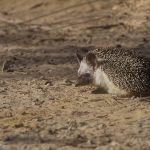 مشخصات: خارپشت بیابانی بسیار شبیه به خارپشت برانت است و مانند آن یک ناحیه لخت در وسط پیشانی دارد. خارها نازک و متراکم و به طول 27 میلی‌مترند. رنگ کلی بدن این خارپشت مانند خارپشت گوش‌بلند، گندمی است. موهای زیر بدن بسیار نرمند. در ناحیه گوش، جلوی پیشانی، چانه، گلو و سینه غالباً موهای سفید دارد. پوزه، صورت، دست‌ها و پاها، عقب شکم و دم، قهوه‌ای تیره است. تفاوت اصلی آن با خارپشت برانت در دندان پیش آسیای دوم است. در خارپشت بیابانی این دندان بسیار کوچک است و یک یا به ندرت دو ریشه دارد ولی در خارپشت برانت دندان کامل است و سه برجستگی و دو تا سه ریشه دارد.
