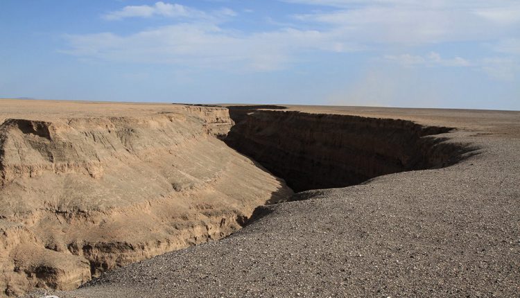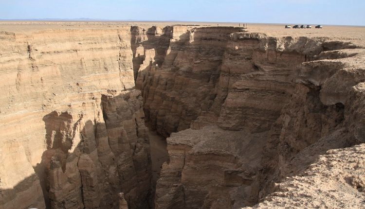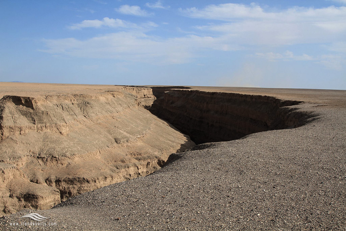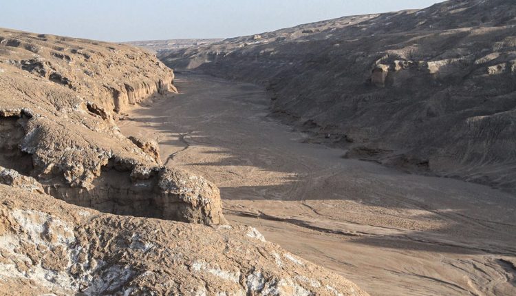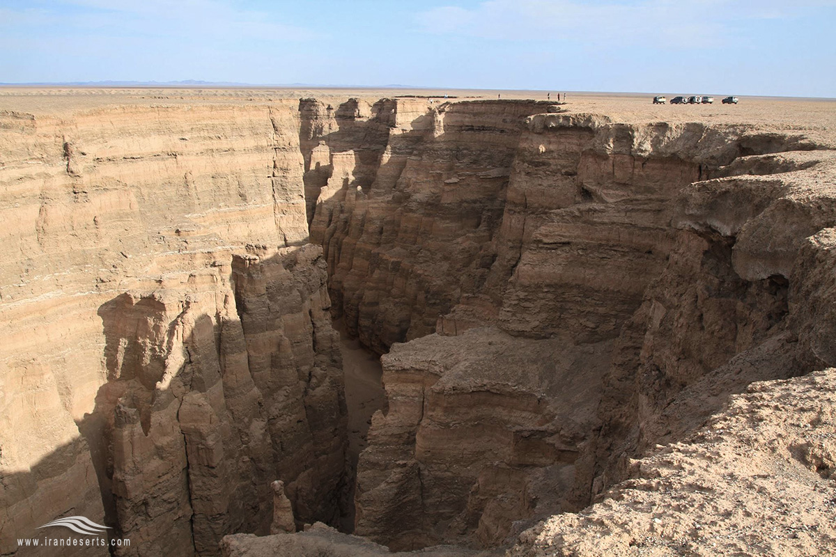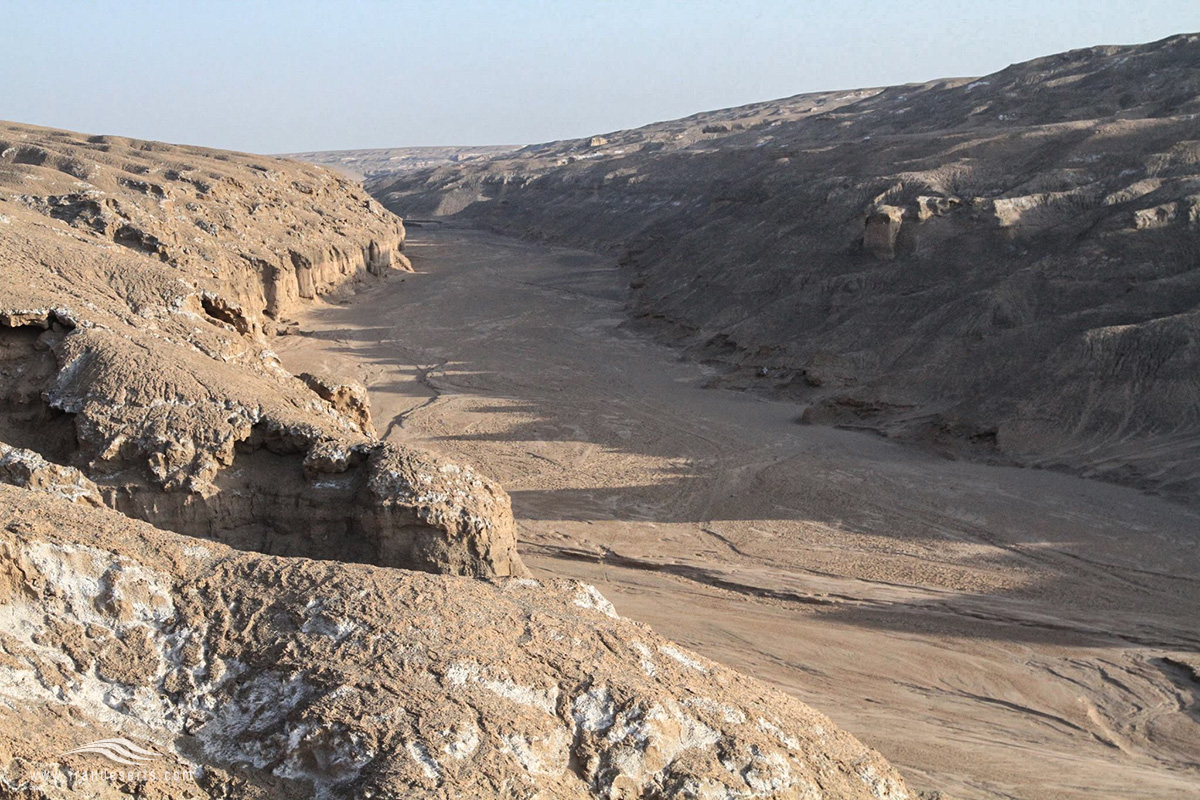 در جایی که رودخانه خشک به چاله نمکزار ختم می شود، ۴ کیلومتر شمال منطقه کال گوشه، دهانه رودخانه خشک دارای دهانه ای چند کیلومتری است. اختلاف ارتفاع بین بستر رود و سطح دشت در حدود ۱۰۰ متر است.