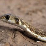 بدن قهوه ای متمایل به زرد یا خاکستری با خالهای تیره ،‌دو خط قهوه ای یا سیاه رنگ در دو طرف سر و در پشت گوشه‌های دهان ، سطح شکمی سفید یا متمایل به زرد و یکنواخت یا با خالهای صورتی .