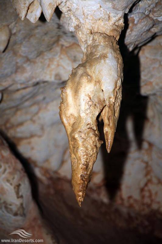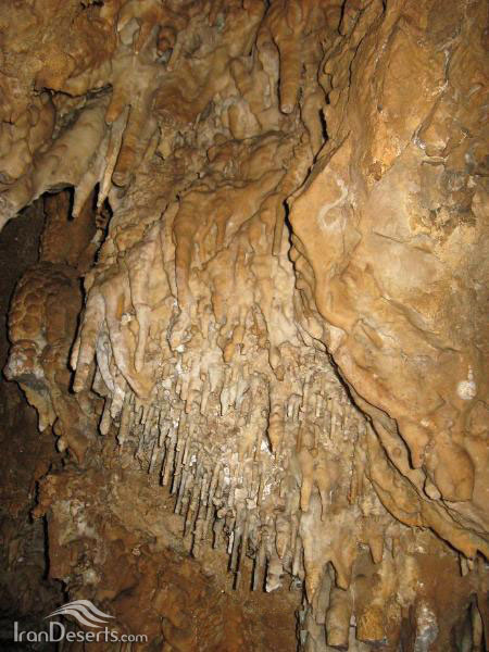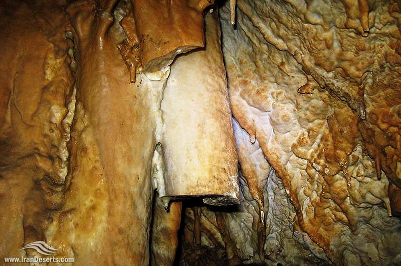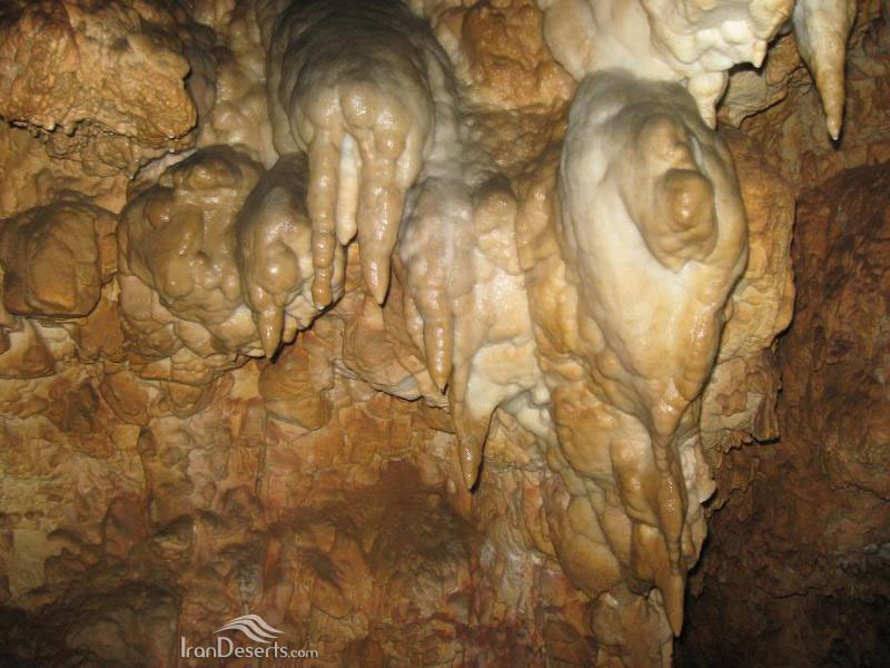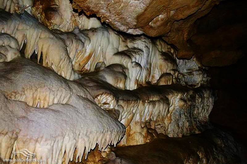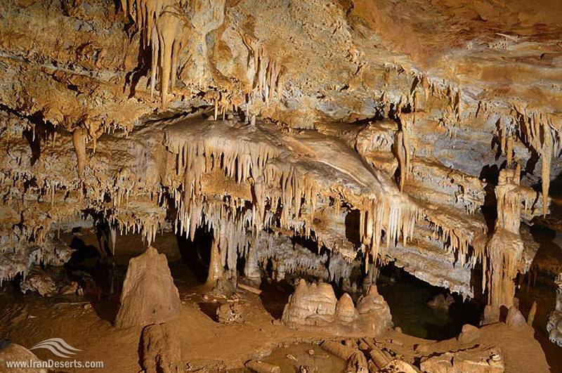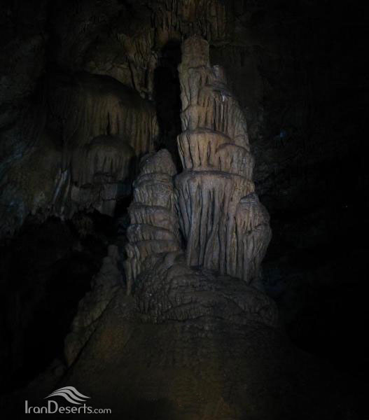 سلام این غار یکى از زیباترین آثار طبیعى است که متاسفانه از طرف کوهنوردان و غار نوردان غیر حرفه اى نظافت و دست نوشه ها چهره آن را نا پسند کرده است. بنده در سال ۱۳۷۰ به اتفاق جمعى از دوستان بنامهاى آقایان یونس بادبره. محمد کهورى. شهرام عبدالهیان و دو نفر که نامشان را فراموش کردم رفتیم و از جاهاى زیباى آن دیدن کردیم. یه راه رو تنگ حدود ۴ ال ۵ مترى در قسمت شمال شرقى دارد که فقط باید بصورت سینه خیز از آن رد شد و در وسط آن راهرو یه اطاقک حدوداً یک متر در یک متر مکعب وجود دارد که میشود یک نفر بشیند. خودم در آن اطاقک وقتى که رسیدم و نشستم دو تا خفاش رو دیدم که درست روبروى صورتم داشتن به من نگاه میکردند. و از آن راهرو به شکافى رسیدیم و از آن شکاف از غار خارج شدیم. دیدن این غار رو به همه دوستان بخصوص کوهنوردان غیر حرفه اى توصیه میکنم.