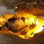 در انتهای یکی از دالان های طبقه اول دهلیز بزرگی است که در کف آن اسکلت حیوان چهارپایی که تبدیل به کلسیت شده است دیده می شود این اسکلت با داشتن پاهای بلند و سم از یک طرف و دم دراز و سرنسبتاً بزرگ از طرف دیگر شباهتی با جانوران معمول ندارد و بنظر می رسد حیوانی از دوران گذشته با شکل و شمایل ویژه باشد و از نظر طبیعی جزو حیوانات دوران چهارم مورد مطالعه قرارگیرد.