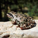 توصیف : این گونه شبیه گونه قورباغه قهوه ای ایرانی، شامل یک گروه گونه ای دیگر است که از گروه قورباغه های قهوه ای جدا شده و با نام کلی Rana camerani شناخته می شود این نام علمی مربوط به نمونه های که در ایران زیست می کنند زیست می کنند نیز می شود. برخلاف دیگر گروه قوربا غه های قهوه ای تمایلی به زندگی در خارج آب نداشته و شبطه گونه های دیگر قورباغه ها می باشد ولی شباهتی نیز به قورباغه قهواه ای ایرانی دارد و آن داشتن لکه گیج گاهی است که مانند قورباغه قهوه ای ایرانی است. یکی از دلایلی که نام فارسی آنرا قورباغه راه راه گذاشته اند وجود چندین خط تیره و روشن روی سطح پشتی است که نمای راه راه را به آن می دهد. در ایران این گونه تاکنون از استان های شمال غربی، شمالی –مازندران و گیلان- و استان مرکزی گزارش گردیده است. متاسفانه اطلاعات در رابطه با این گونه در ایران و دیگر زیستگاه های این جانور بسیار اندک است.