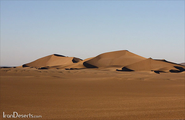 در شمال غربی و در نور صبحگاهی، کوهی عظیم و سرخ فام مشخص است که«سرخ کوه» نامیده می شود. دوباره حرکت می کنیم، در مسیر دیگر گیاهی وجود ندارد،عوارض سطحی زمین حاکی از وزش بادهای با شدت و قدرت زیاد در این منطقه است. سطح بیابان را موجهایی از ماسه و شن به ارتفاع حداکثر ۴۰ سانتیمتر و طول ۲تا ۴ مترپوشانده که به صورت هلالی و به موازات هم قرار گرفته اند. دانه های شن بین ۵-۲ میلیمتر قطر دارند که در هیچ کجا ندیده ایم باد بتواند این دانه های درشت و تیره رنگ را به صورت موجهای پیاپی روی هم انباشته کند.