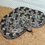 رنگ بدن خاکستری نقره ای ، شنی ، زرد ،قهوه ای خاکستری متمایل به آجری ، در سطح جانبی دارای خط سفید زیگزاک همراه با لکههای سفید با کنارههای تیره متمایل به سیاه ، در ناحیه خلفی سر دارای دو لک یا خط سفید صلیبی شکل ، سطح شکمی روشن یا سفید گاهی با خالهای کوچک قهوه ای روشن یا تیره یا سیاه .