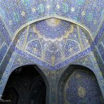 دوقابی که در دو طرف مدخل واقع شده طرح سجاده را دارد که نمازگزار بر آن نماز می خواند. در فاصلهای بیشتر حجم جالب توجه این نما، که گاه بر اثر رنگ آبی درخشانش حالتی تقریبا اثیری پیدا میکند، کاملا بر میدان مسلط است و در تضاد با کاخ برازنده شاهی، برتری خیرهکننده دین را بر قدرت دنیوی و اهمیت اساسی دین را در زندگی شهر نشان میدهد.
