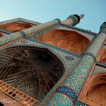 در طرف راهروی شمالی که از درب کریاس به صحن وارد میشود، شبکههایی ظریف از کاشیهای معرق در پنجرهها نصب شدهاند. قسمتی از سردر صفحه ایوان کاشیکاری معرق شده است و جرزهای آن آجری رنگ میباشد. دور خارجی گنبد و بر کمربند آن عبارت “السلطان ظل الله….” به کوفی بنایی تکرارشده است.