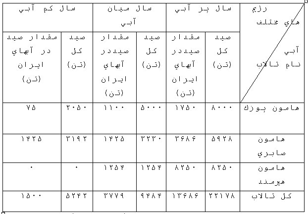 جدول : میزان صید انواع ماهی در هامون ها را نشان می دهد.