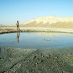 این گلفشان در موقعیت جغرافیایی E571607 N255711 در شرق تنگه هرمز و در استان هرمزگان واقع است. ارتفاع مخروط این گل فشان حدود 30 متر، قطر مخروط حدود 500 متر و قطر دهانه این گل فشان حدود 15 متر است و حبابهای گاز همراه با گل رقیق با فواصل زمانی حدود 10 ثانیه به طور متناوب از سطح آن خارج میشوند. ابعاد حبابها حدود نیم متر است.