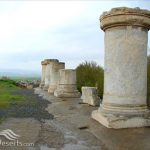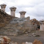 بر روی دیوارهای این بنا به جز فاصله بین دو رشته پلکان جنوبی ، یک ردیف ستون قرار گرفته است این ستون ها کوتاه و قطورند. فاصله ستون ها از محور تا محور ۴۷۵سانتی متر است. بلندی هر ستون شامل پایه ، ساقه و سرستون می باشند ۳/۵۴متر و قطر هر یک از ساقه ستون ها که استوانه ای شکل می باشند ۱۴۴ سانتی متر است. گیلوئی زیر پایه ستون به بلندی ۶۰سانتیمتر است که احتمالاً گیلوئی چوبی روی سرستون هم که طی آتش سوزی سوخته و اثری از آن باقی نمانده است نیز ۶۰سانتیمتر داشته که مجموعاً با فریز زیرین و زبرین به ارتفاع ۴۷۵ سانتی متر می رسیده است.