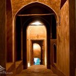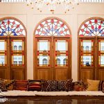 ورودی خانه به شکل یک راهروی سنگفرش با دیوارهای کاهگلی ست که به یک در چوبی زیبا ختم می شود. کنار در یک آیفون تصویری! به چشم می خورد و وقتی بالای سرم را نگاه کردم نقابی با طرح اسلیمی خوش تراش بر روی لامپ نصب شده بود که این دو نویدبخش بنایی با تلفیق هنر دیروز و فناوری امروز بودند. داخل که شدیم مسئول پذیرش خانه به گرمی از ما استقبال کردند و آقای شاهی هم بعنوان مدیر هنری بنا ساعتی بعد به ما ملحق شدند. مثل اکثر خانه های کاشان سبک معماری این خانه هم گودال باغچه و حیاط مرکز بود. یک حیاط با حوض آب و باغچه های زیبا که اتاقها و سردابهای متعددی در اطراف آن وجود داشت. مسئولین و تیم مرمت خانه و در راس آنها خود خانم منوچهری خانه را تغییر کاربری داده و به شکل یک هتل اقامتی سنتی بازسازی کرده بودند که ماحصل این امر 9 اتاق زیبای با دکوراسیون سنتی و امکانات امروزی شده بود. اما این تمام آن چیزی نیست که در خانه منوچهری وجود دارد. مدیران خانه به فکر سایر نیازهای گردشگرانی که این بنا را برای اقامت انتخاب کنند هم بوده اند. امکان استفاده از غذاهای بومی در رستوران بنا فراهم شده که البته گویا قرار است بزودی امکان استفاده همگانی هم میسر شود. لذت نوشیدن شربت زعفران آنهم در یک جام شیشه ای ظریف تجربه خوشایندی برای من بود. شربت همانقدر برایم شیرین بود که لذت مشاهده عملی شدن یکی از ایده های چندین ساله ام یعنی مکانی برای استفاده از نوشیدنی و شربتهای سنتی آنهم در هوای گرم کاشان.