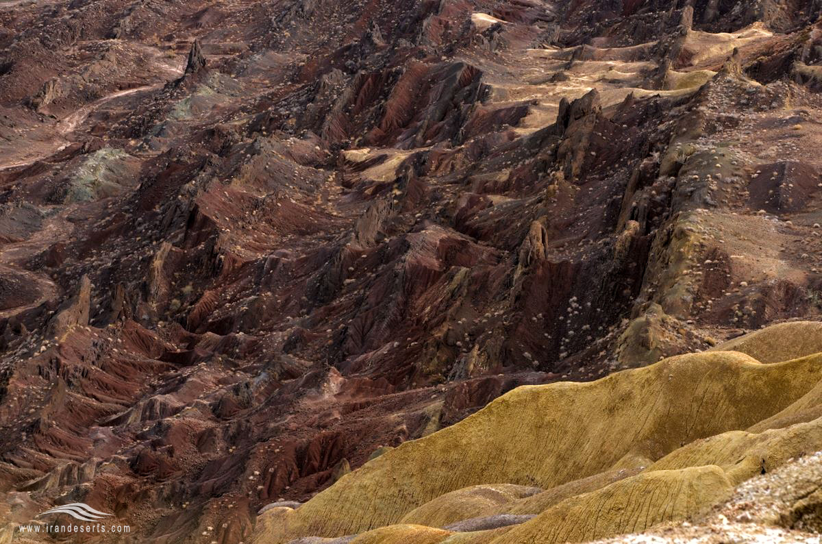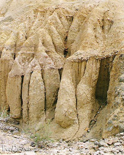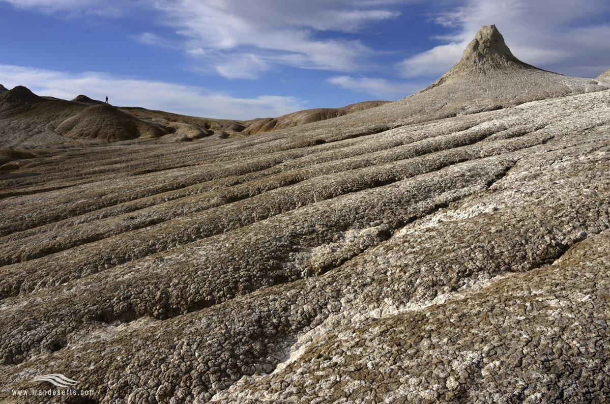 در قله این مخروطها و داخل کراتر آنها، دهانه های متعددی با قطر چند سانتی متر وجود دارد که به طور متناوب ازآنها گل خاکستری یا کمی متمایل به سبز خارج شده و به سوی دامنه ها سرازیر می گردد. تناوب بیرون ریزی و فوران گل ها در طی زمان، یک ساختمان چند لایه ای را در مخروط ها و زمینهای مجاور پدیده آورده است. این لایه ها دارای ساختمان فلسی یا پولکی هستند و با یکدیگر همپوشی دارند. به گونه ای که جدیدترین لایه در رو، و در راس مخروط قرار گرفته و قدیمی ترین لایه نیز به رنگ روشن است. همچنین گاهی جریان گل غلیظ در دامنه مخروط نقوش مینیاتوری همانند گچ بریهای قرنیز شکل را پدید می آورد.با گذشت زمان و فرا رسیدن مرحله پیری گل فشان، فاصله و تناوب فعالیت های آن کمتر می شود و غلظت گل آن افزا یش می یابد. در نتیجه گسترش افقی مخروط کاهش یافته و به ارتفاع آن افزوده می شود.
