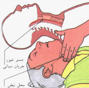 ۴. برگردید بالاى سر بیمار و راه تنفس او را دوباره باز کنید. دو تنفس دهان به دهان به او بدهید.