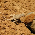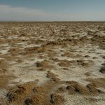 پس از دقایقی راهپیمایی زمین دوباره رنگ عوض می کند. جنس زمین مخلوطی از خاک و نمک است که نمک به صورت هاله های زیبا در بین خاک پراکنده شده رنگ خاک قهوه ای تیره است که با مخلوط شدن با نمک سایه روشنهای زیبایی در آن بوجود آمده. اما در میان این زیبایی ها لکه های بزرگ قهوه ای رنگ روشنی دیده می شود که به ظاهر عاری از نمک است و هیچ حفره ای در آن وجود ندارد. از ترکیب این خاکها صحنه های بسیار زیبایی بوجود آمده است. غالبا این لکه های قهوه ای از زمینهای اطراف خود چند سانتی بلندتر هستند. مزه خاک آن بسیار شور است و زبان را می سوزاند. بر روی یکی از همین لکه ها مارمولکی (نام علمی آگما) زیبا می بینیم به دنبالش می دویم تا شاید بتوانیم چند عکسی را در کنارش بگیریم بالاخره خسته می شود و حالتی تهاجمی پیدا می کند ما هم فرصت را غنیمت می شماریم و چند عکسی را با او می گیریم.