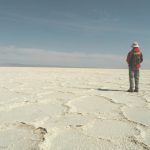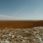 در روبرو و در سمت شمال کوه هایی دیده می شود که به گمانم کوهایی جنوبی ریگ جن هستند و در سفرنامه سون هدین از آنها نام برده شده که مسیری کاروانرو از میان آنها به سمت انارک می رود و امروزه کاملا متروکه است. از مرز ریگی رد می شویم و پا بر روی خاکی نرم که حاوی مقدار کمی نمک است می گذاریم. پا تا زیر قوزک در آن فرو می رود حدود یک کیلومتری را در این زمین راه می رویم. حال روی زمین را قشری از نمک پوشانده و زیر این نمک گلی لغزنده وجود دارد که راه رفتن در آن احتیاطی خاص را می طلبد. کم کم قشر نمکی کم شده و جای خود را به گلی بسیار لیز می دهد رنگ زمین قهوه ای تیره است.