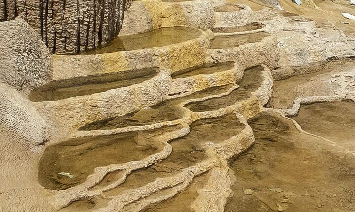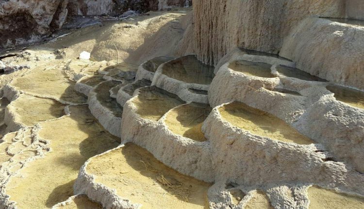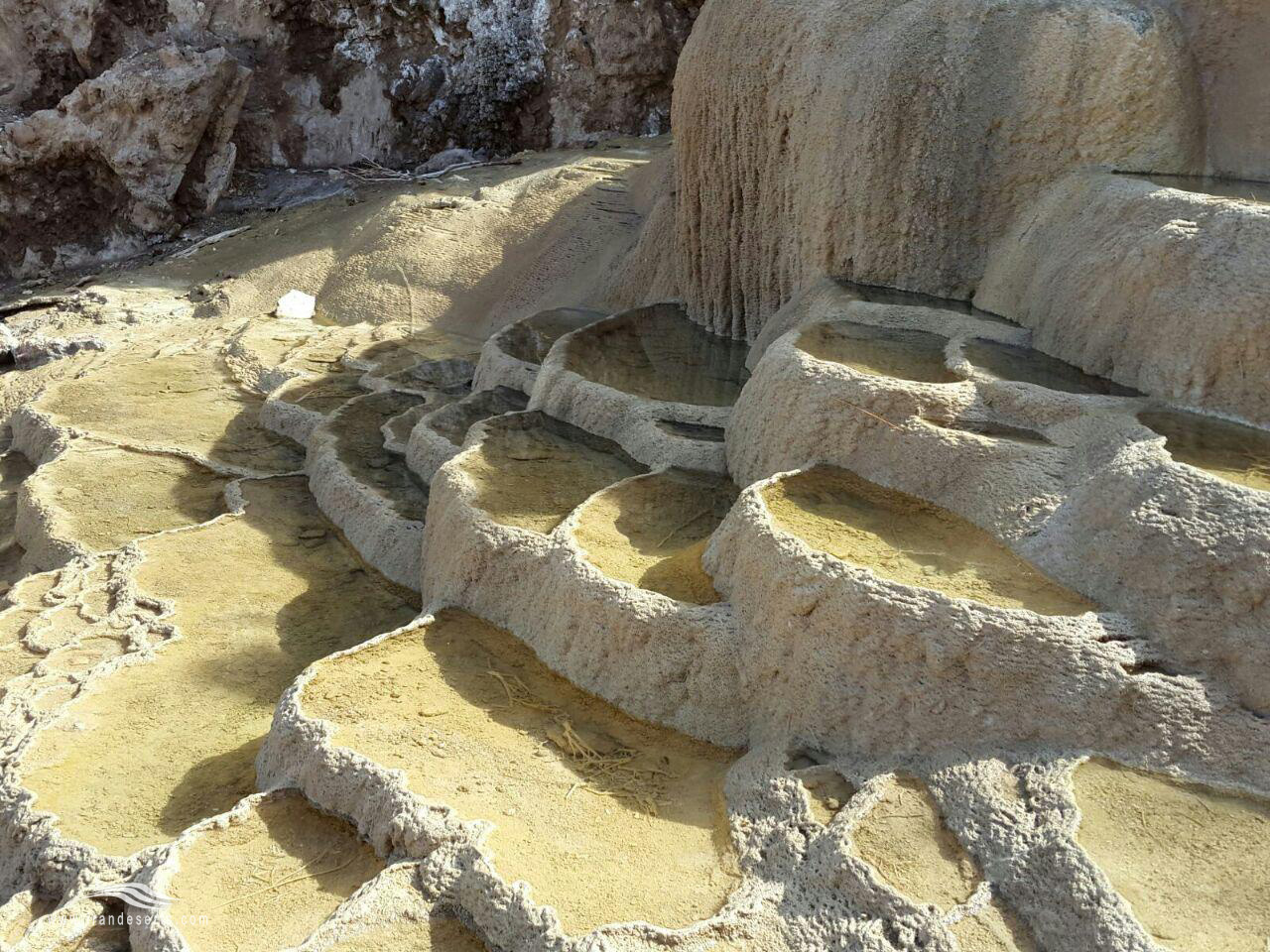 سنگاب «اشنیز» ندوشن یکی از پدیده های بسیار زیبای استان یزد است که می توان آن را نمونه بسیار کوچک باداب سورت مازندران دانست. سنگاب هایی که به دلیل داشتن املاح مختلف نمکی،گوگردی و آهن، طی میلیون ها سال به صورت رسوبات سفیدرنگ آهکی مطبق و پلکانی تشکیل شده اند.