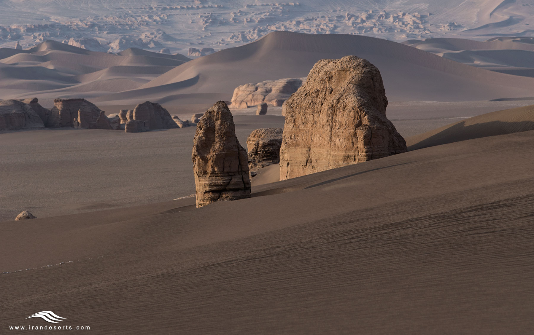 Rig Jenn (Dunes of Demons) is a vast area of sand dunes and mud playas in the south west of Iran’s central desert in the border region of the Semnan, Isfahan provinces and Kavir national park. It was not travelled by the old caravan travellers beliving it is a place occupied by evil spirits.